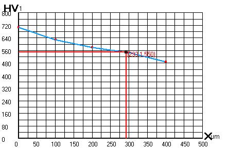 系統聯動:通過硬度計串口通訊,實現系統與硬度計聯動(僅限聯動版). 壓力聯動:硬度計壓力轉換時,系統感知試驗力變化并實時顯示在系統中(僅限聯動版)。 轉塔聯動:軟件控制硬度計進行物鏡-壓頭之間相互切換,無需人工控制硬度計(僅限聯動版)。 加載聯動:軟件控制硬度計進行加載,無須人工控制硬度計(僅限聯動版)。 測量聯動:軟件控制硬度計轉塔、加載并直接讀取維氏硬度值(僅限聯動版)。 圖像采集:實時顯示硬度圖像,維氏硬度計標準塊,可存儲、打印圖像。 自動測量:自動找出壓痕的四個頂點,維氏硬度計算,速度快,數據準,有多種專業算法以適用不同壓痕。 自動尋點:在壓痕的四個頂點附近點取,系統自動尋找最佳頂點,大大降低人為誤差。 對角測量:點取壓痕的左上及右下角,維氏硬度計算公式,即可讀出硬度值。 四點測量:點取壓痕的四個頂點,讀出硬度值。 微力測量:特別設計專業功能,洛氏維氏硬度計,可將微小試驗力(10gf,25gf,50gf)下的壓痕實時放大且不降低分辨率,提高測量精度。 硬度換算:依據國家標準,自動進行布氏-洛氏-維氏-努氏等多種硬度數值轉換,實時顯示。 閾值設定:上下限設置、超差別判斷報警。 定標設置:兩種定標方式:測試卡定標和硬度塊定標 圖文報告:自動記錄測量數據,自動生成硬度-深度曲線,維氏硬度計 翻譯,保存或打印硬度-深度曲線及所有壓痕測量值。保存或打印壓痕圖像及當前壓痕硬度值。所有報告按WORD文檔保存。 數據統計:將多個壓痕的測量結果以EXCEL數據格式導出,并自動統計測量次數、硬度最大值、最小值、平均值、均方差等。 硬度-深度曲線圖: